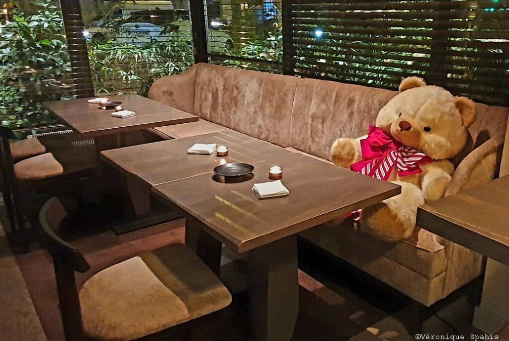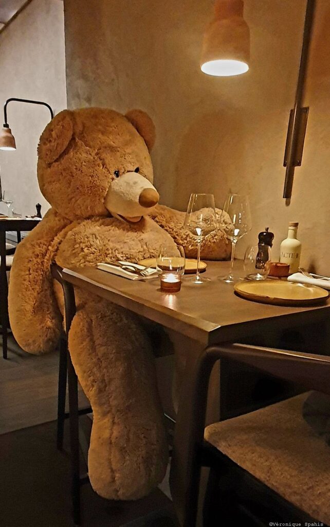 Dans la salle, la présence d’un Nounours des Gobelins s’impose comme un clin d’œil affectueux au quartier et à son identité, rappelant que le restaurant s’inscrit pleinement dans la vie locale.