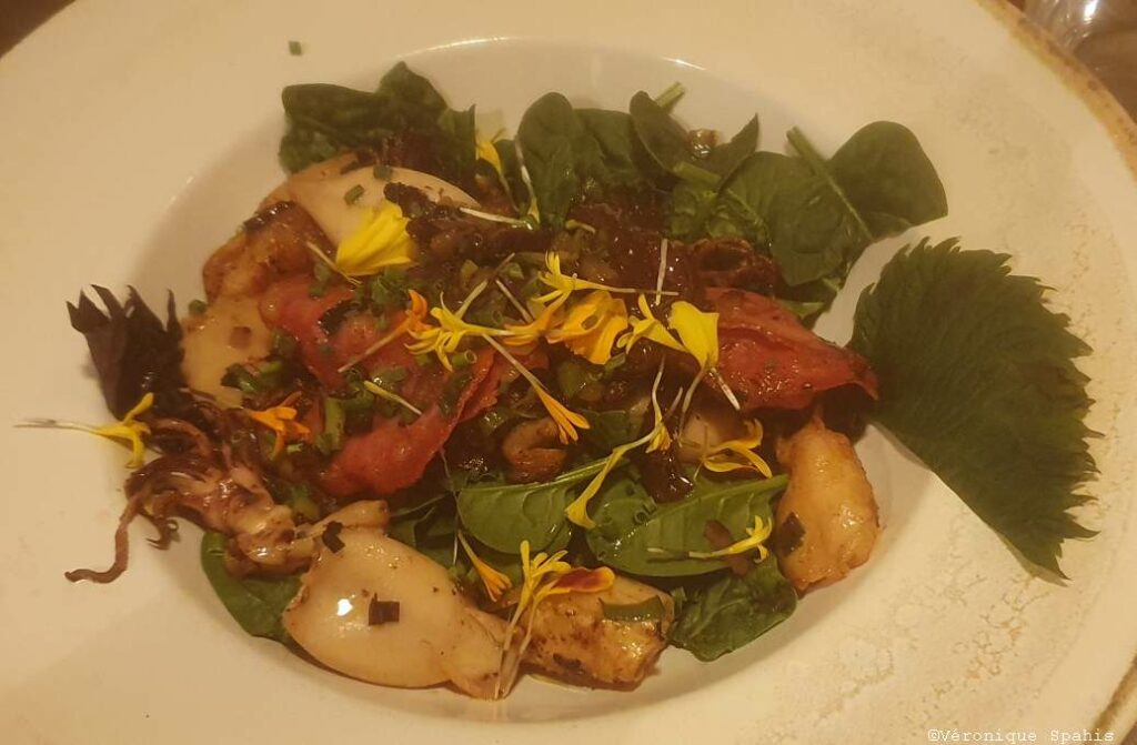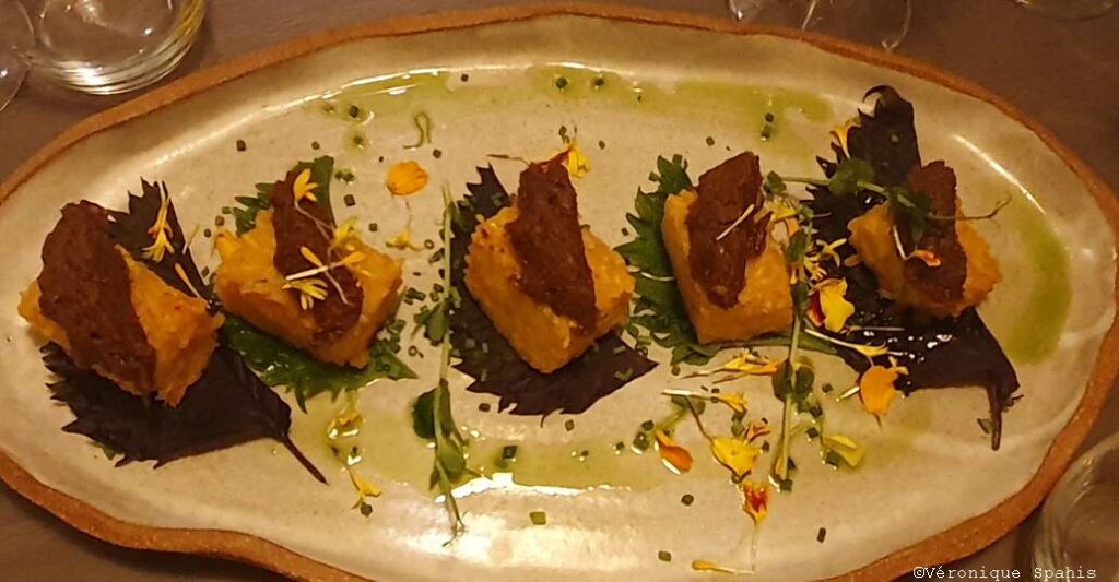 La carte voyage entre l’Italie, l’Espagne, le Maroc et le Sud de la France. Les entrées évoquent les marchés méditerranéens, tandis que les plats principaux alternent entre poissons travaillés avec finesse et viandes mijotées, riches en saveurs.