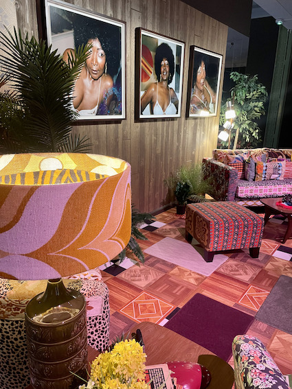 La culture populaire occupe une place majeure dans l’œuvre de Mickalene Thomas. L’exposition rend hommage à des figures emblématiques afro-américaines – Whoopi Goldberg, Diahann Carroll, Naomi Sims, Eartha Kitt – qui ont brisé les barrières raciales et sexistes de leurs industries respectives. Ces icônes incarnent une beauté qui dépasse l’apparence pour s’ancrer dans l’activisme, la persévérance et la liberté. Le visiteur est également invité à pénétrer dans des espaces domestiques reconstitués, inspirés des salons de la grand-mère et de la mère de l’artiste. Ces installations immersives convoquent la mémoire, l’intime et l’héritage familial, tout en offrant des lieux de repos et de réappropriation symbolique pour les corps noirs.
