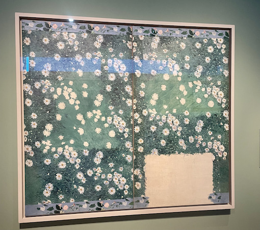 Les Collections au jardin fait dialoguer des chefs-d’œuvre emblématiques de Monet, Caillebotte ou Bonnard avec les toutes dernières acquisitions, telles que L’Escaut près d’Anvers, Soleil couchant (1866) de Johan Barthold Jongkind, La Berge (2024) de Maude Maris, ou encore une série de photographies de Jean Gaumy consacrées à Giverny (2017-2024).