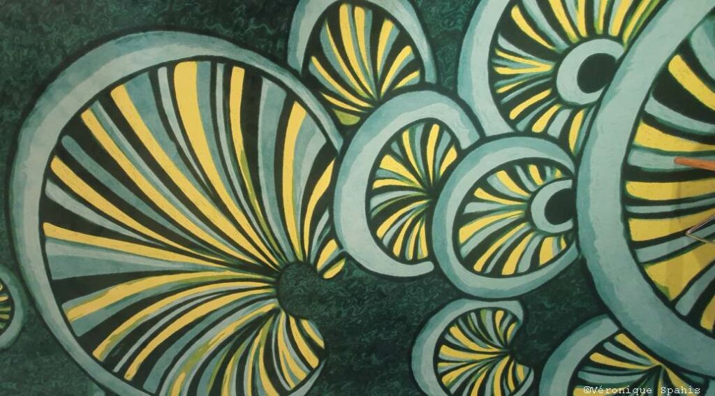 L’installation pose enfin une question rarement abordée : que signifie marcher sur une œuvre ? Contrairement aux peintures ou aux installations murales, ici le spectateur ne contemple pas à distance ; il pénètre dans l’œuvre, l’éprouve par le contact direct. Le sol devient lieu d’engagement physique et symbolique. On foule un territoire imaginaire, on traverse un organisme vivant. Cette inversion des hiérarchies spatiales – donner au sol une valeur expressive première – constitue sans doute l’apport le plus radical de Aquaponie.