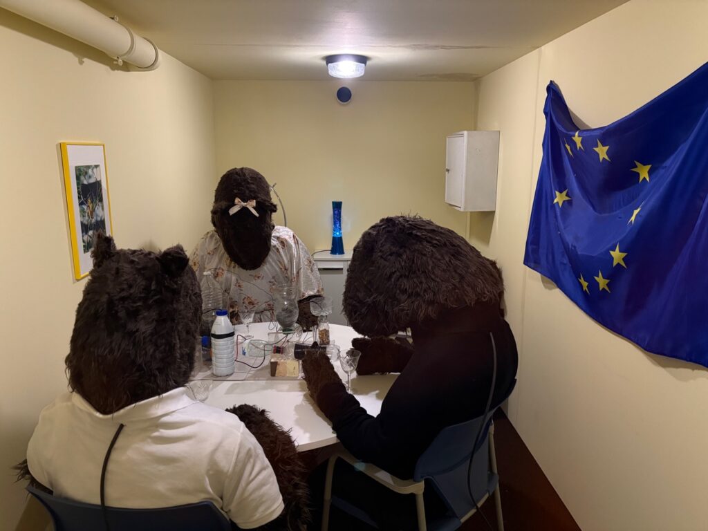 La dernière partie du parcours déploie des formes où la scène déborde dans l’image contemporaine. La documentation de Tragedia Endogonidia (2002–2004) de Romeo Castellucci montre comment l’effondrement du sens s’incarne dans un théâtre où les forces, les animaux, les fluides et les lumières deviennent des opérateurs au même titre que les acteurs. « Castellucci refuse la catharsis : la tragédie ne se résout pas, elle prolifère », rappelle Agnès Gryczkowska. Plus loin, Angélique Aubrit et Ludovic Beillard plongent le visiteur dans un labyrinthe post-apocalyptique où des belettes humanoïdes torturent des humains dans un univers administratif en ruine ; un théâtre de l’effondrement où les marionnettes titubent avec ironie « à travers les ruines du langage ».