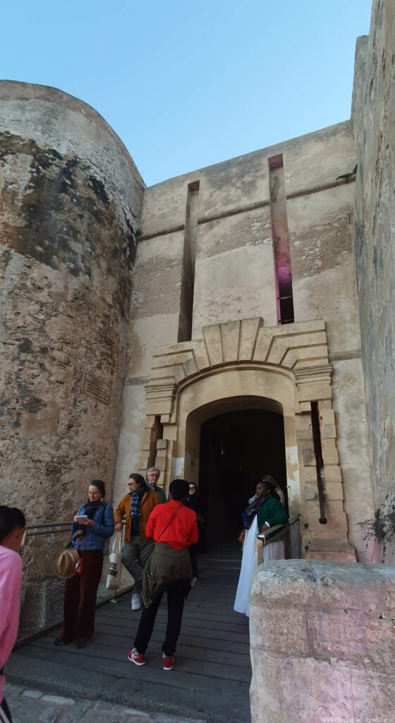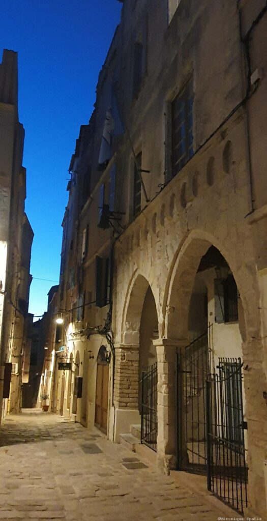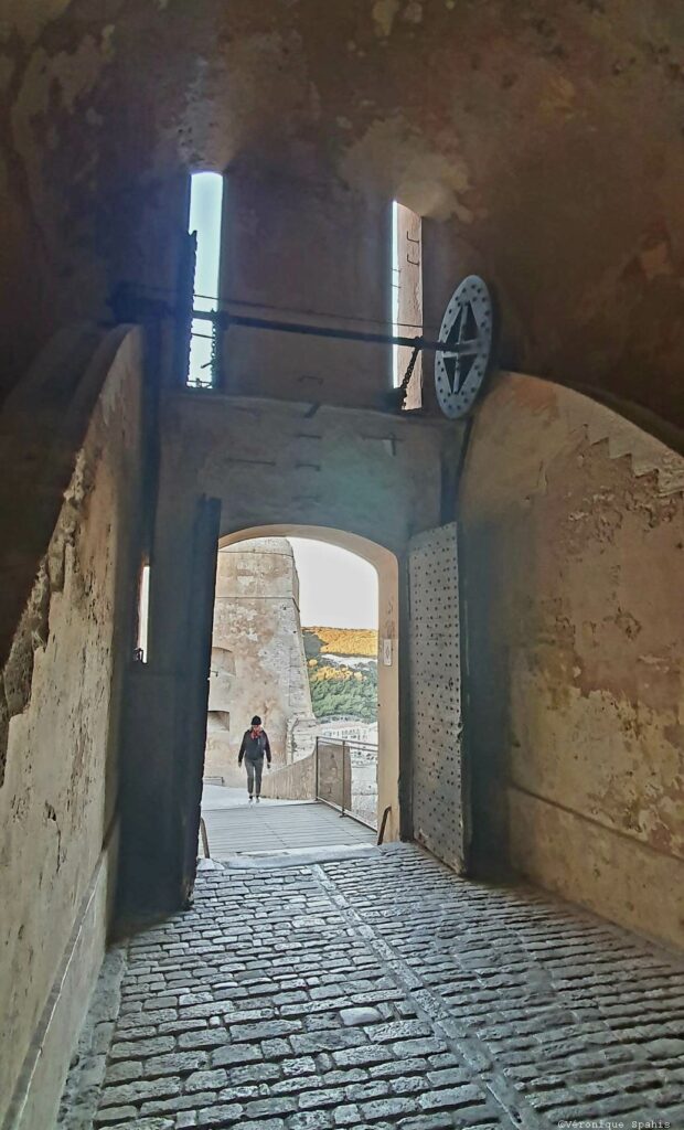 De nouveau sur terre, l’ascension vers la citadelle se fait par des ruelles pavées et sinueuses. À chaque tournant, des portes voûtées et des arcades vous rappellent que Bonifacio fut un bastion défensif contre les pirates et les armées ennemies. Les Génois, au XIVe siècle, renforcèrent les murs et construisirent des fortifications qui tiennent encore aujourd’hui.