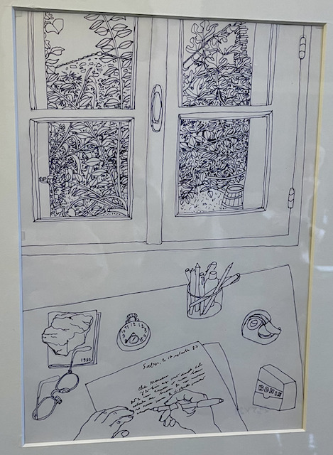 Les œuvres présentées retracent le parcours singulier de Claude Simon, peintre et photographe avant d’être reconnu comme l’un des grands écrivains du XXᵉ siècle, et révèlent son lien profond et constant avec les arts visuels. L’histoire de l’art constituait pour lui une source d’inspiration inépuisable, influençant directement son écriture qu’il concevait comme un véritable travail de collage. Ses autoportraits dialoguent avec les figures des collections du musée, tandis que ses textes et archives révèlent une réflexion continue sur l’art, passé et contemporain, confirmant l’unité profonde de son geste créatif entre image et littérature.