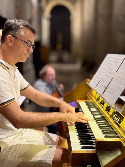 Cette clarté favorise les ajustements selon Pascal Marsault : Frédéric m’invite à élargir les silences, à faire des césures, à respirer davantage car tout n’est pas écrit dans la musique. La durée des articulations, des silences, elle est à composer. Et cette composition, elle devient évidente quand on joue ensemble. Frédéric Audibert confirme, moi, il y a même quelques coups d’archet ou doigté au mouvement que j’ai adapté et qui étaient très clairs avec Pascal à l’orgue.