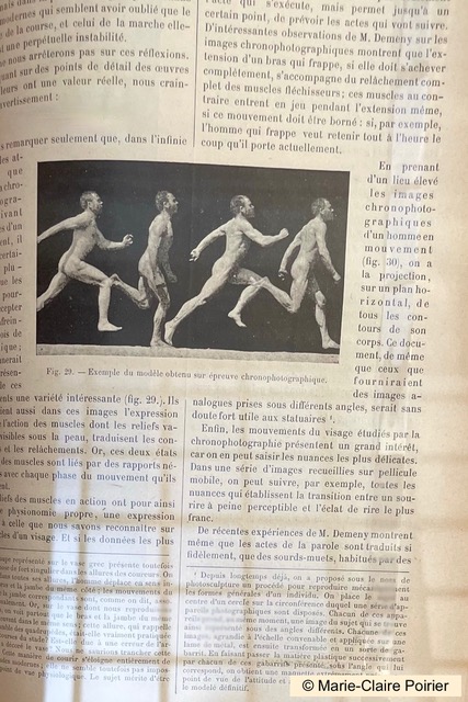 Son étude du mouvement est devenue obsessionnelle et il s’attachera à choisir des modèles idéaux et d’élite (jamais de personnes porteuses de handicap) mais sa position de précurseur ne permet pas qu’on lui en fasse le moindre reproche. Il était préoccupé que rien ne vienne fausser les résultats. Il étudie donc les sportifs qui présentent les meilleures performances, comme (ci-dessus) le coureur ouolof Candy exécutant un saut avec élan en 1895.