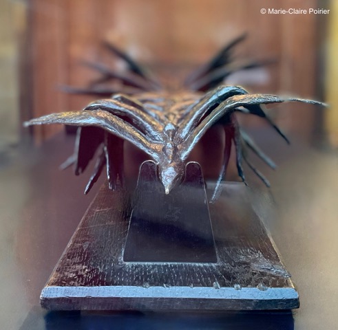 On a ci-dessus un exemple de la Décomposition du vol du goéland, en bronze et bois, que Marey a fait réaliser en 1887 afin de visualiser en volume un cycle de battements d’ailes. La sculpture offre une vue à 360° et à l’échelle 1 du vol d’un oiseau. Cette schématisation figée est complémentaire à la synthèse animée du vol procurée par le zootrope.