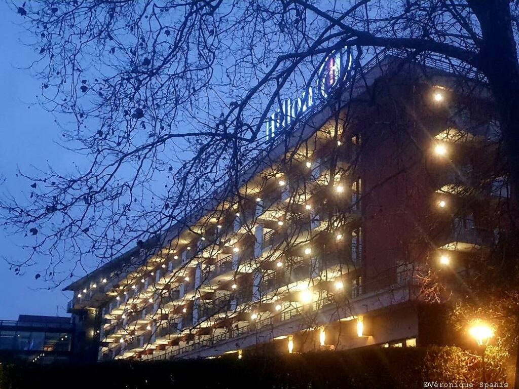 Pour clore ce panorama architectural et savourer le visage le plus contemporain de la station, il faut s’arrêter devant la silhouette audacieuse de l’Hôtel Hilton. Si la Villa Lumière incarne le faste d’hier, cet établissement représente le renouveau du luxe évianais. Érigé sur les fondations d’un ancien palace disparu, il déploie une façade de verre et de lignes courbes qui semblent épouser le mouvement des vagues du Léman.