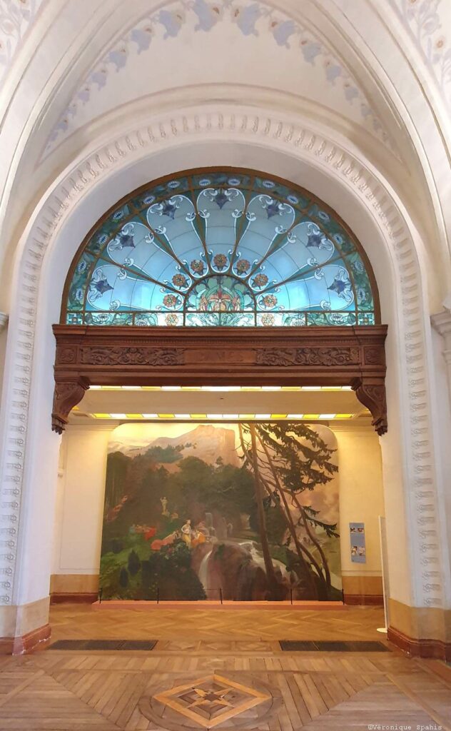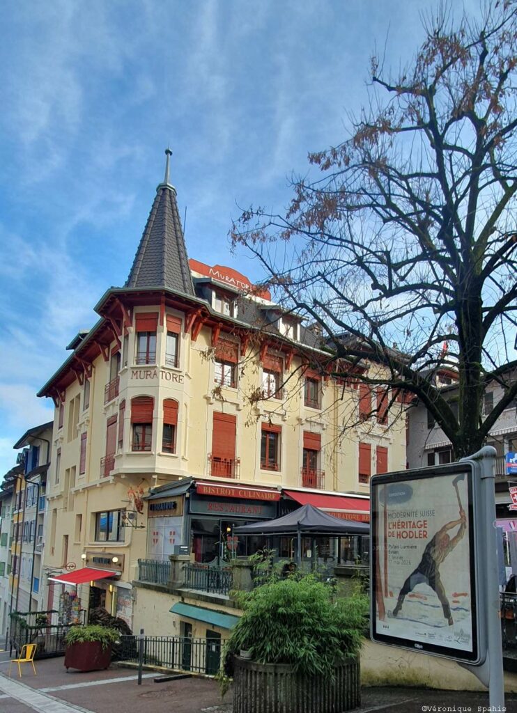 À quelques pas de la villa familiale, le Palais Lumière impose sa silhouette monumentale, véritable phare de la station qui semble vouloir rivaliser avec les sommets alpins en face. Inauguré en 1902, cet édifice n’était pas, à l’origine, un lieu d’exposition, mais le théâtre sacré du thermalisme moderne. En franchissant son entrée, on pénètre dans ce qui fut l’un des établissements thermaux les plus luxueux d’Europe, un espace où l’on venait soigner autant son corps que son rang social.