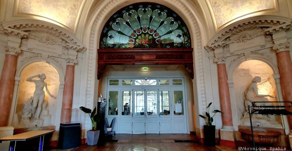On regarde avec impatience l’avancée de sa restauration monumentale (en juin prochain). Car en ces lieux, on n’était pas seulement là pour boire ; on était là pour être vu. C’était le salon de conversation le plus couru d’Europe, où les grands de ce monde, entre deux verres d’eau prescrits, refaisaient la carte du continent dans un décor de vitraux aux iris et de dômes cuivrés. En attendant de pouvoir à nouveau fouler son sol de mosaïques et d’admirer sa statue de nymphe signée Bernstamm, on se laisse séduire par la promesse de sa renaissance, qui rendra à Évian son plus bel emblème de la « vie en rose ».