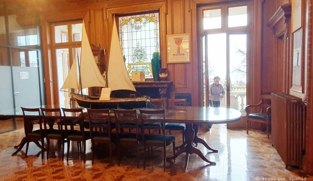 L’intérieur est un festival sensoriel : soieries lyonnaises aux murs, bronzes dorés et cheminées monumentales. Mais le clou du spectacle reste le grand salon, dont les larges baies vitrées cadrent le lac comme un écran de cinéma naturel. Ici, les Lumière étaient les hôtes d’un monde en pleine mutation, recevant artistes et savants dans un décor qui, par son luxe inouï, annonçait déjà la démesure des studios d’Hollywood.