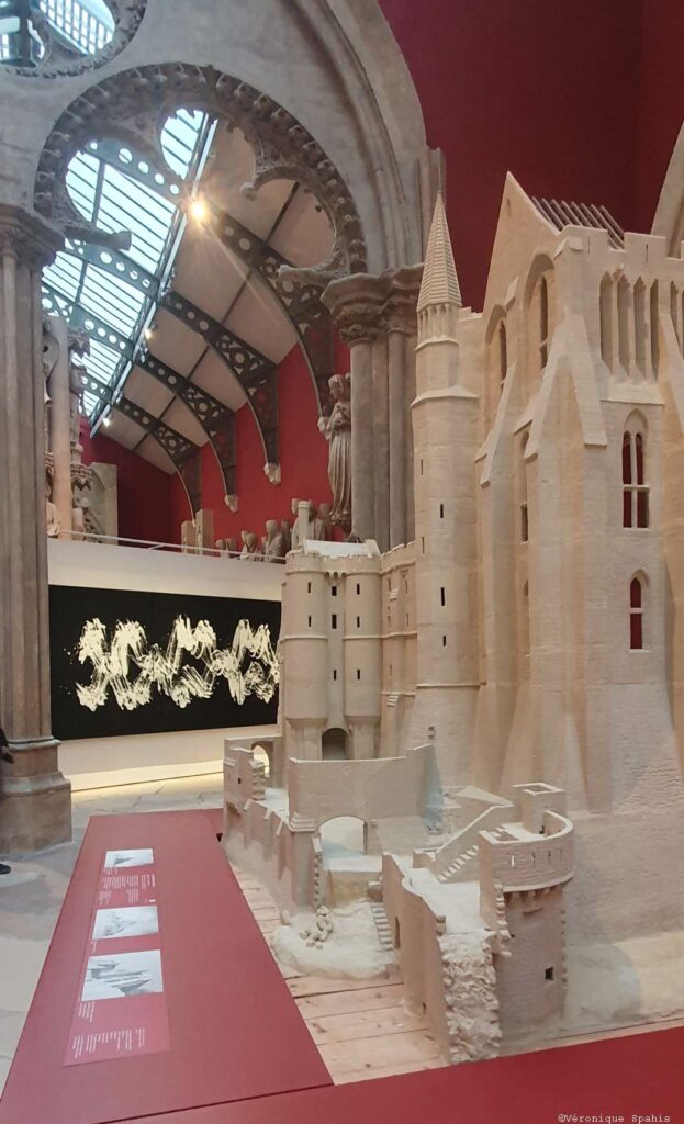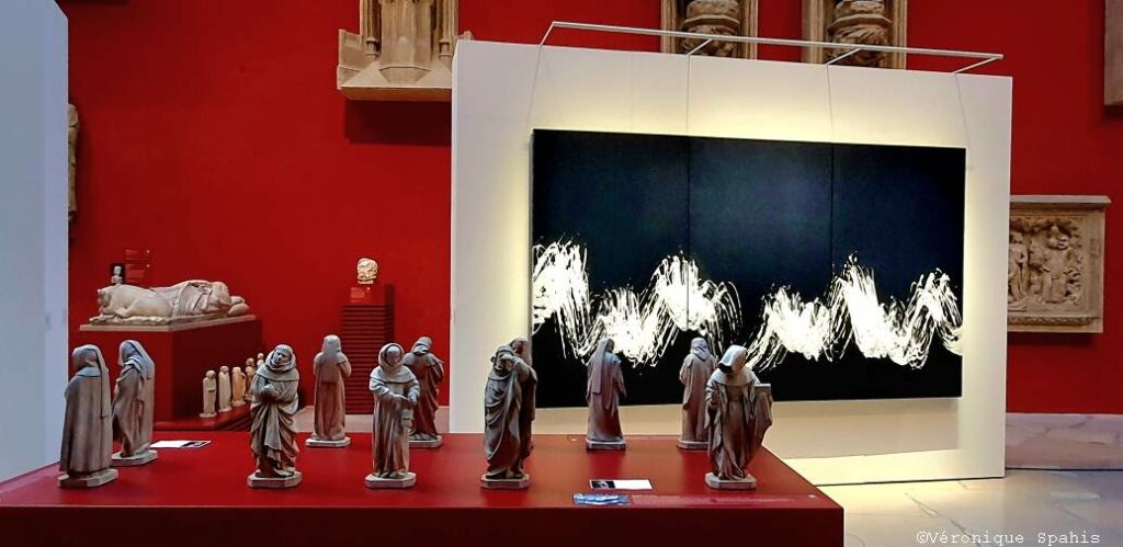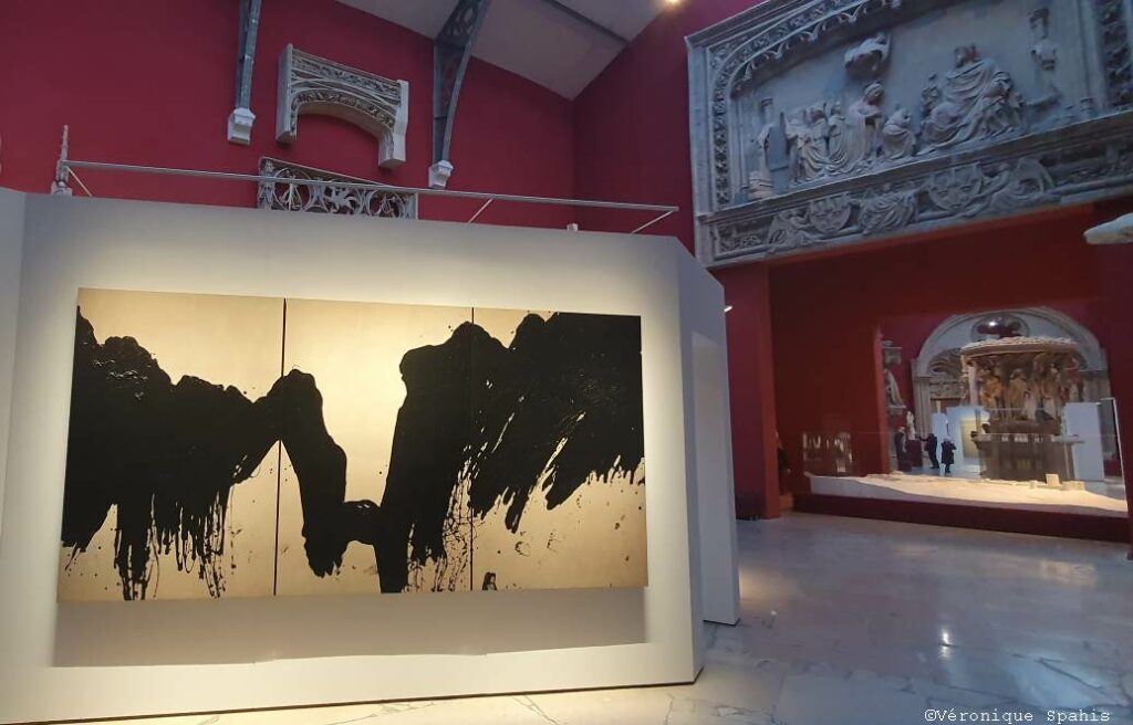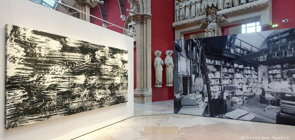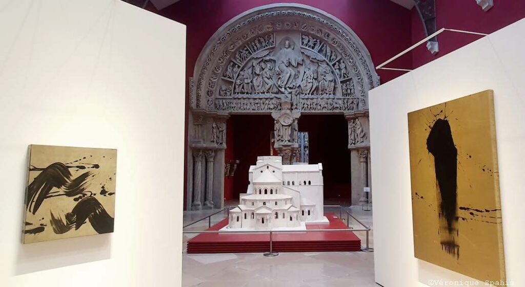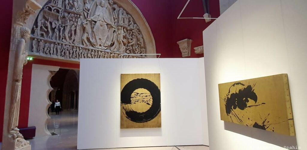 Les verticales des portails gothiques répondent aux lignes de gravité du pinceau ; les volumes massifs amplifient la légèreté du trait ; la couleur devient lumière au cœur de cet espace habité par les ombres et les reflets. Le visiteur circule dans un dialogue permanent entre l’histoire et le présent, le visible et l’invisible.