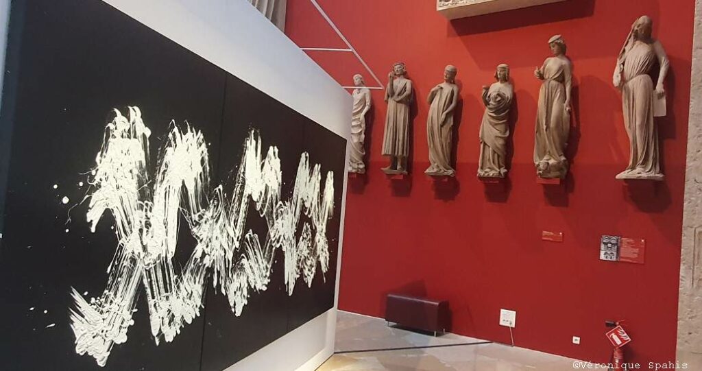 On mesure à quel point l’art contemporain peut éclairer autrement le patrimoine : les moulages, habituellement perçus comme figés, deviennent partenaires de jeu d’une peinture en expansion.