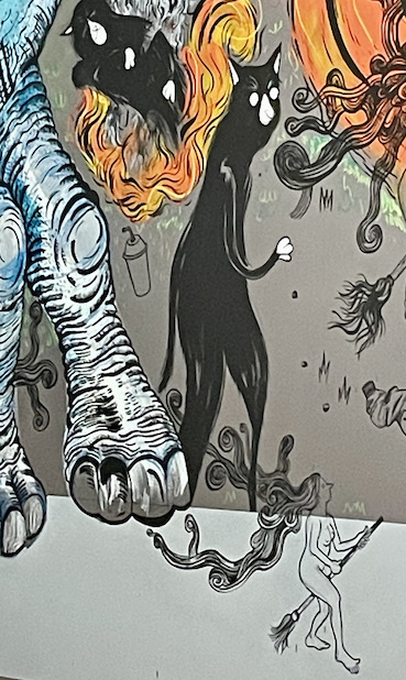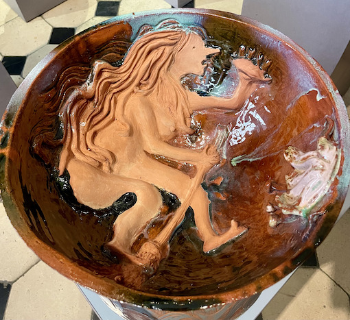 Inspirés par l’époque médiévale et notamment par le Bestiaire d’amour, ouvre en prose de Richard de Fournival, rédigé vers 1245, Florentine et Alexandre Lamarche-Ovize questionnent les formes possibles d’altérité fondées sur le respect plutôt que la domination. Parmi les figures symboliques convoquées, celle de la sorcière occupe une place centrale: incarnation de la féminité, liée à la nature, aux animaux et aux forces lunaires, elle apparaît ici comme un contrepoint critique aux récits traditionnels du pouvoir. Cette figure rappelle les chasses aux sorcières et les procès d’animaux au Moyen Âge.