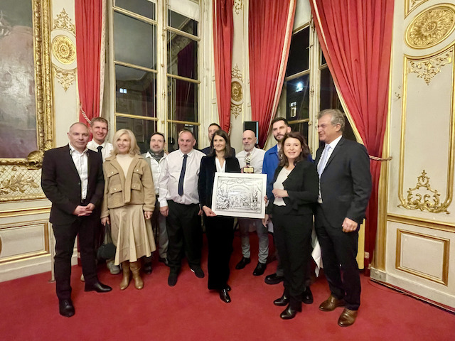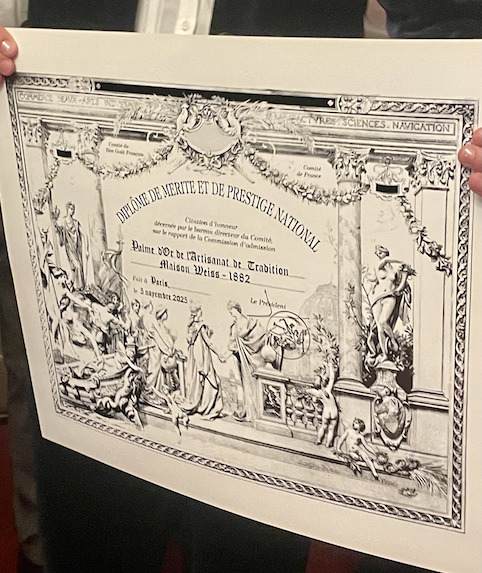 La distinction a été remise à Éric Bouzard, Directeur général, ainsi qu’à l’ensemble de l’équipe de la Maison Weiss par le Sénateur Michel Canévet, Vice-président de la Commission des Affaires économiques, en présence de nombreuses personnalités politiques, dont la Sénatrice Cécile Cukierman, le Sénateur Jean-Claude Tissot, le Député Pierrick Courbon, ainsi que Tristan de Witte, Président du Réseau Excellence des Entreprises du Patrimoine Vivant. Le Président du Comité de France, Olivier de Tilière, a souligné le choix de la Maison Weiss de préserver un travail artisanal fondé sur l’expertise humaine plutôt que sur l’automatisation, rendant hommage aux artisans chocolatiers de l’atelier, qui perpétuent chaque jour les métiers d’excellence français.