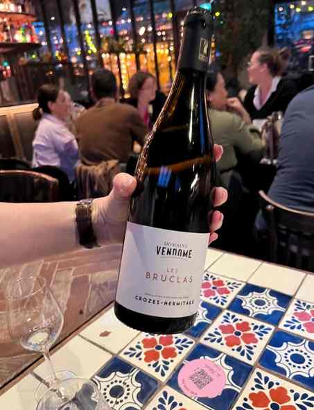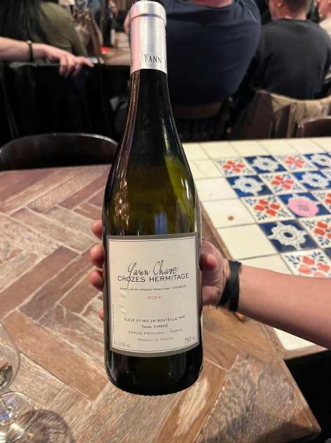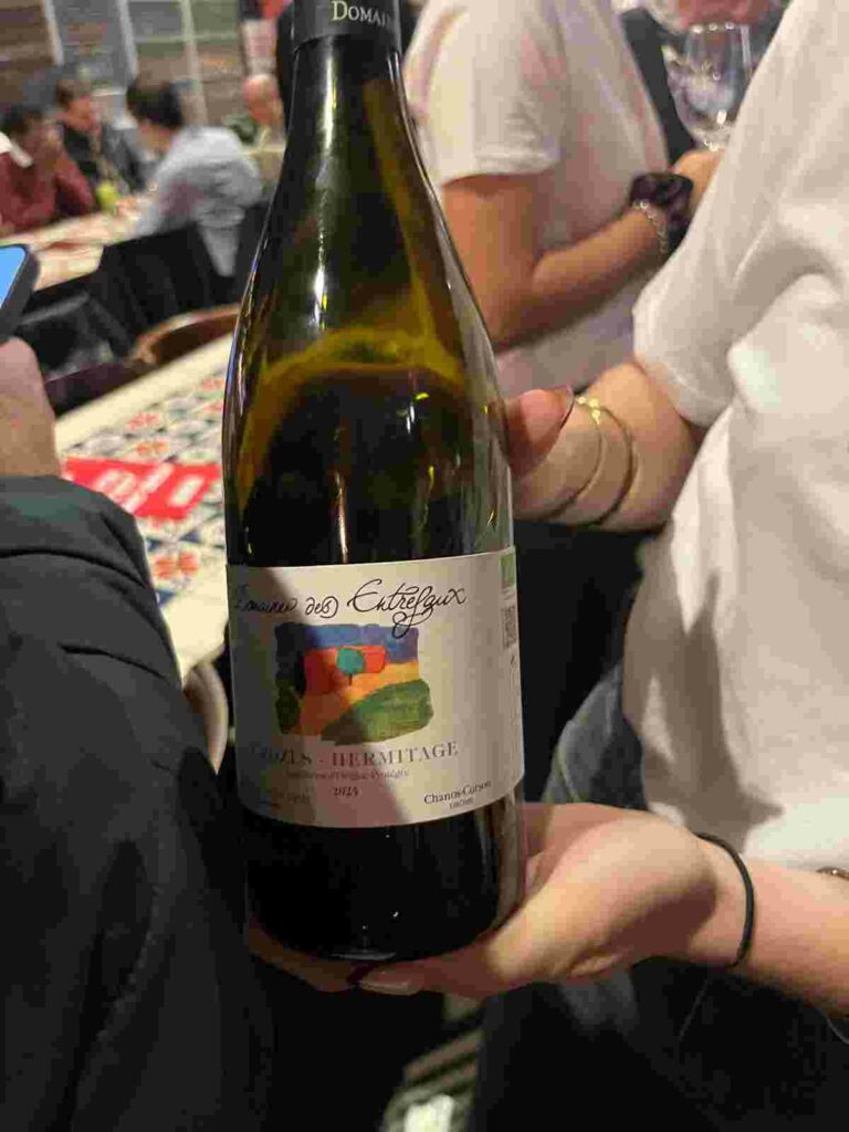 Entre la musique et les néons de la Felicità, nous avons été happés par la bonhomie environnante de la soirée où les vignerons passionnés servaient avec enthousiasme leurs produits. Nous avons débuté par l’élégante bouteille de Crozes-Hermitage de 2024 du Domaine Yann Chave. Sa robe cristalline aux reflets argentés nous donne un avant-goût de sa fraîcheur fleurie. Au nez ainsi qu’en bouche, on a l’impression de goûter à une pêche juteuse qui, malgré sa rondeur garde une pointe d’amertume. Très agréable en bouche, il enrobera parfaitement de sa douceur des poissons délicats. Pour les amateurs de vin plus sucrés, le Domaine Vendôme propose son excellent Les Bruclas Crozes-Hermitage dont la bouteille est même ré employable. Il faut aussi noter que leur Crozes-Hermitage rouge puissant et tanique est un coup de cœur de notre part.
