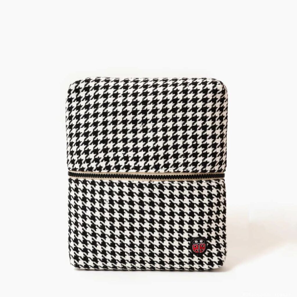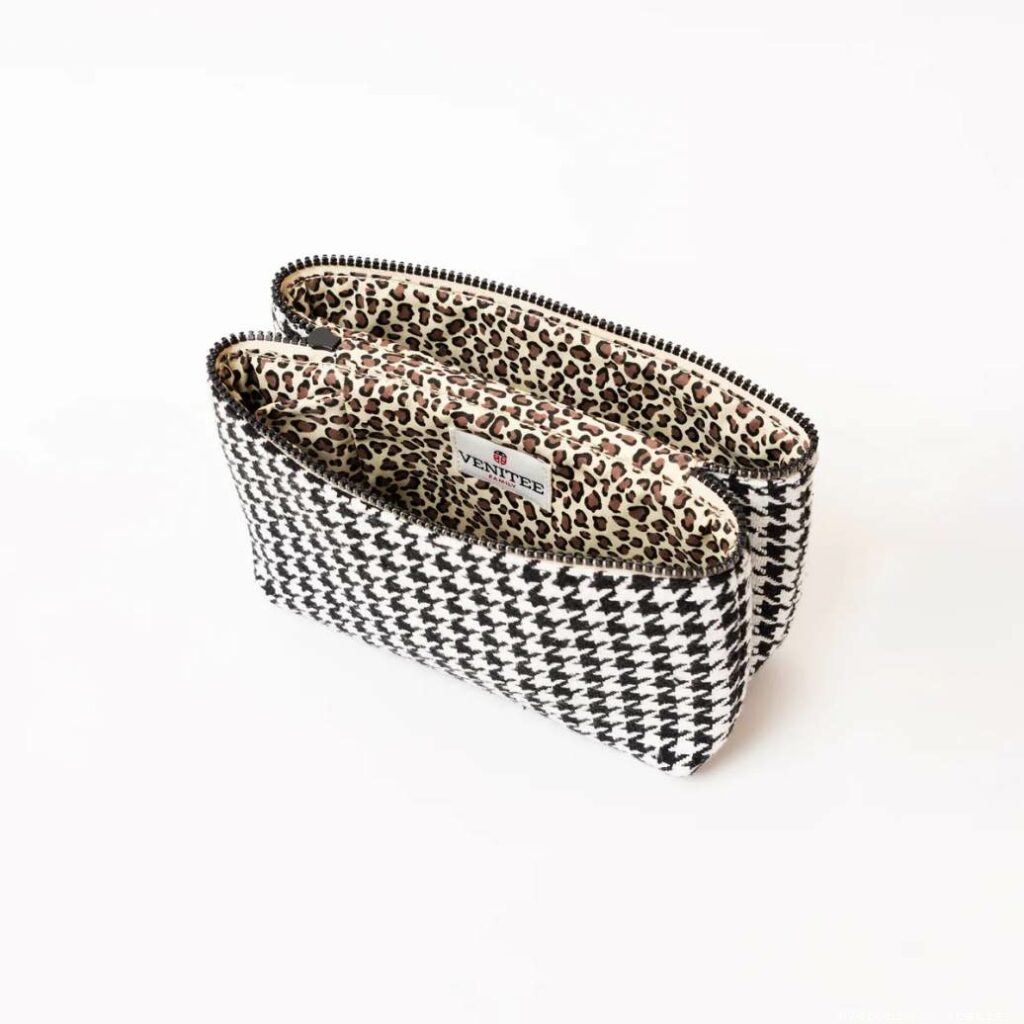 - La TWIN Poule : L’audace graphique. C’est le modèle des tempéraments affirmés. Le pied-de-poule graphique en façade cache un intérieur léopard assumé. Un mélange « sage en façade, sauvage en coulisse » qui séduira les globe-trotters en quête de caractère.