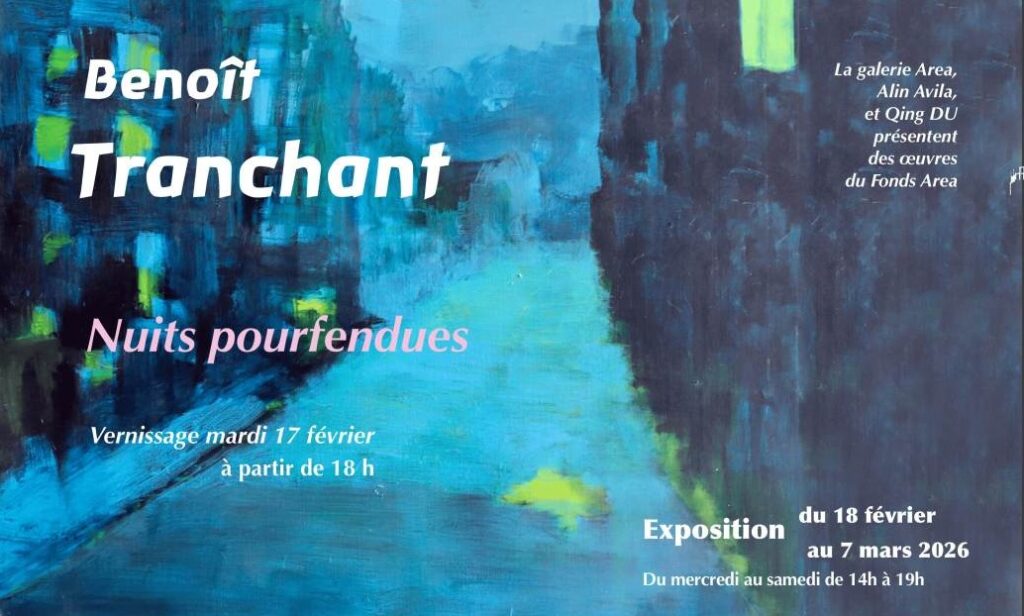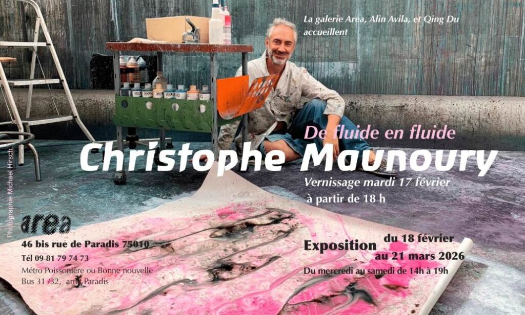 Depuis le 18 février 2026, la Galerie Area (Paris 10e) devient le théâtre d’une rencontre singulière entre trois trajectoires artistiques fortes. Sous les titres évocateurs de « De fluide en fluide », « Avant l’espace » et « Nuits pourfendues », l’exposition déploie un dialogue entre la matière brute, le geste instinctif et la quête de l’essentiel.