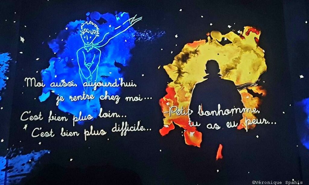 Dans un espace de 3 300 m², les visiteurs sont invités à suivre les pas du Petit Prince, de l’astéroïde B612 aux planètes qu’il explore, en passant par le désert et les cieux étoilés. Les aquarelles originales de Saint-Exupéry prennent vie grâce à des projections monumentales sur les murs et les sols, accompagnées d’une bande-son spatialisée qui enveloppe le spectateur dans une atmosphère onirique.