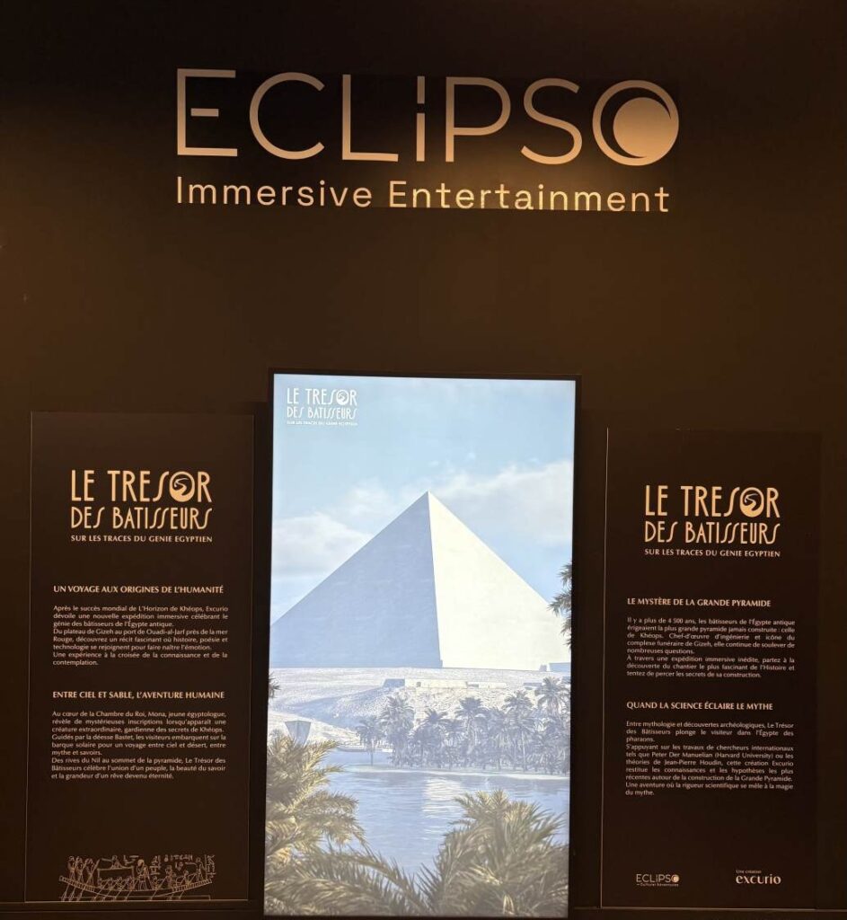Le Trésor des Bâtisseurs dans les centres Eclipso de Paris, Lyon et Bordeaux. À Paris, au 45 rue des Pirogues de Bercy (12ᵉ). Tout public dès 8 ans. Durée : environ 1 heure (dont 45 minutes d’expédition).