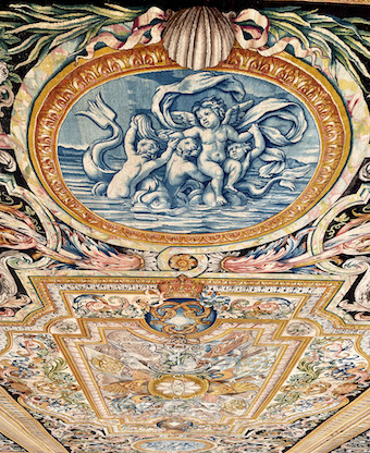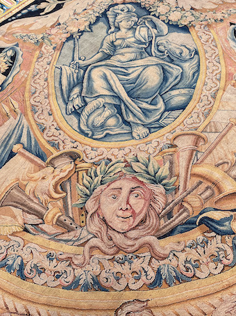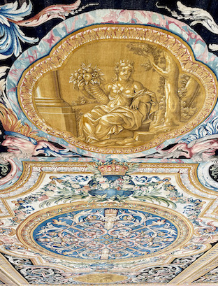 Confiée à l’excellence de la Manufacture de la Savonnerie, la création de cet ensemble est dirigée par Charles Le Brun, premier peintre du roi, qui en conçoit les fastueux décors. Réalisé par la Manufacture de la Savonnerie, chaque tapis, d’environ neuf mètres de large, incarne le prestige, la puissance et l’ambition artistique du royaume.