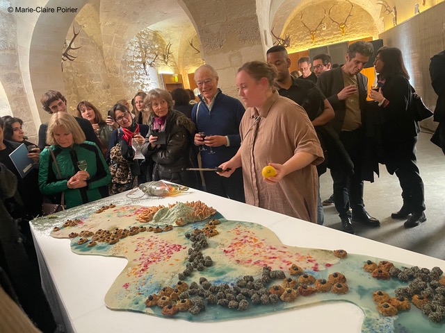 La remise des prix s’est poursuivie par l’invitation à une dégustation des paysages liquides des Matribiotes, collectif créé par les artistes Charlotte Gautier van Tour et Luz Moreno Pinart, qui se définissent comme des artistes spéculatives qui s’inspirent du passé, agissent dans le présent et œuvrent pour le futur.