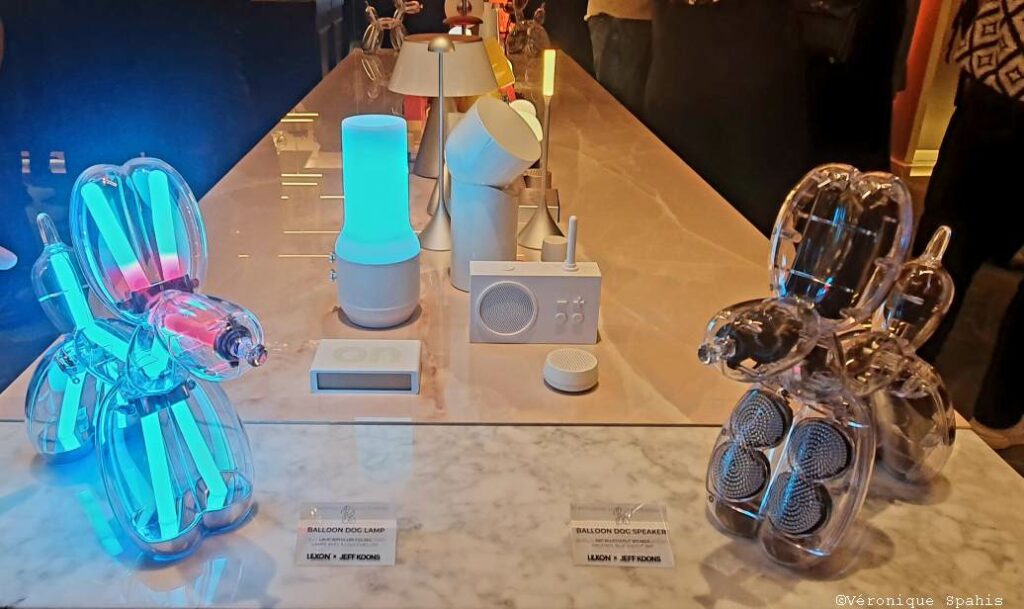 Parmi les collaborations, citons celles inspirées par les univers visuels de Jean-Michel Basquiat ou Keith Haring. Dernièrement avec Jeff Koons, Lexon a réinterprété la célèbre sculpture Balloon Dog en objets fonctionnels du quotidien : une lampe sculpturale et une enceinte Bluetooth.