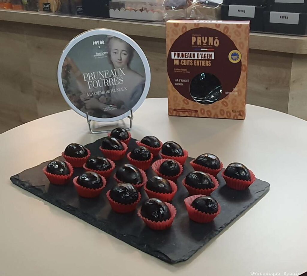 Avant de quitter ce magnifique lieu, un petit clin d’œil à la spécialité d’Agen : une jolie boîte de pruneaux d’Agen fourrés à la crème de pruneaux aux couleurs de l’exposition. Un souvenir gourmand (et un pur délice) !