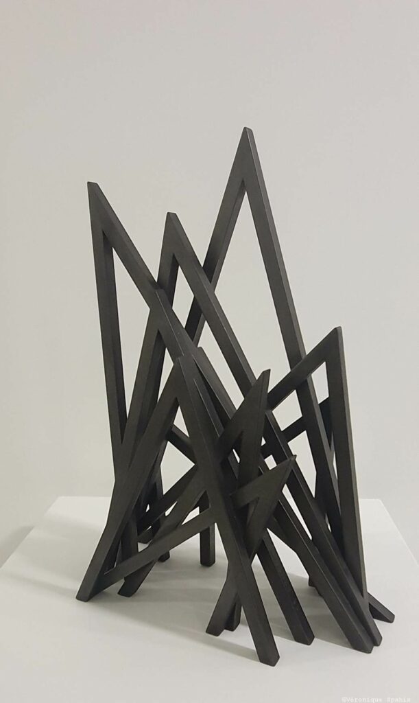 Bernar Venet — L’ordre et le chaos. Bernar Venet (né en 1941) développe une œuvre radicale qui puise dans les mathématiques, la physique et la philosophie. Ses dessins, peintures et sculptures explorent la tension entre des systèmes parfaitement rationnels et la part d’instabilité inhérente à tout système. Ses lignes, arcs et angles, d’apparence rigoureuse, semblent souvent s’échapper de leur propre logique. Cette tension crée une énergie visuelle intense, presque dramatique : le mouvement naît de l’équilibre instable entre contrôle et débordement.