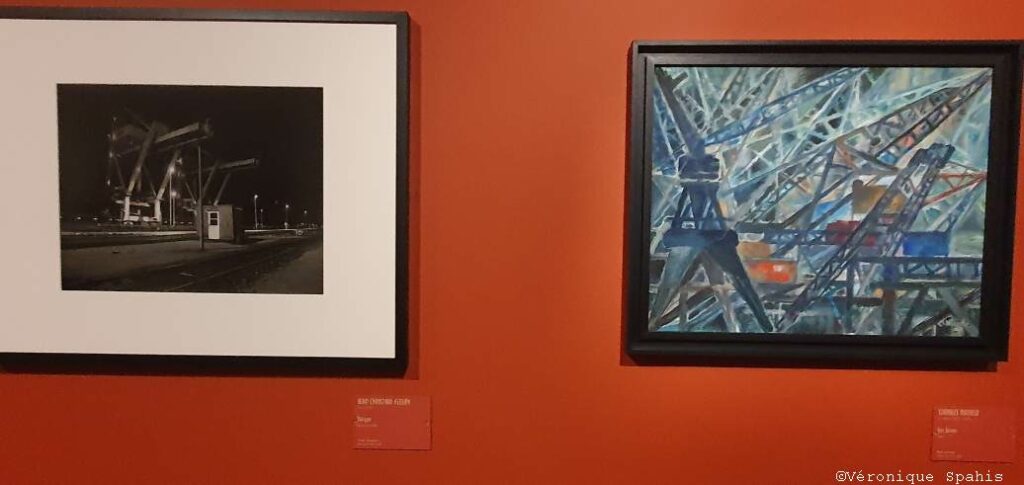 Les œuvres choisies révèlent la diversité des approches : certaines mettent l’accent sur la lumière et la couleur, d’autres sur la monumentalité ou la rigueur géométrique des installations portuaires. On y découvre des tableaux qui capturent la vibration d’un port en activité, des photographies contemporaines qui transforment les conteneurs et les quais en éléments graphiques surprenants, ainsi que des gravures et dessins qui explorent les lignes et les volumes de l’espace industriel. L’exposition joue sur le contraste entre passé et présent, entre perception réaliste et interprétation poétique.