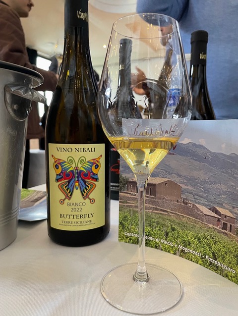 Le Butterfly Bianco 2022 de l’Azienda Vitivinicola Maria Di Bella Vino Nibali est élaboré à partir de 50 % Catarratto, 40 % Carricante, 5 % Minnella et 5 % Insolia avec des raisins provenant de vignes âgées de 60 à 100 ans, conduites en gobelet et en espalier (donc avec de faibles rendements), poussant sur le sol volcanique du versant nord de l’Etna à 600 mètres d’altitude.