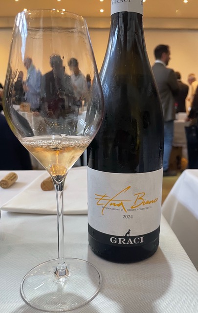 L’Etna Bianco 2024 de Graci est un vin blanc très aromatique élaboré avec les cépages autochtones Carricante à 70 % et Catarratto pour 30 %.