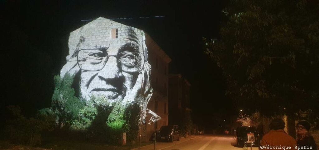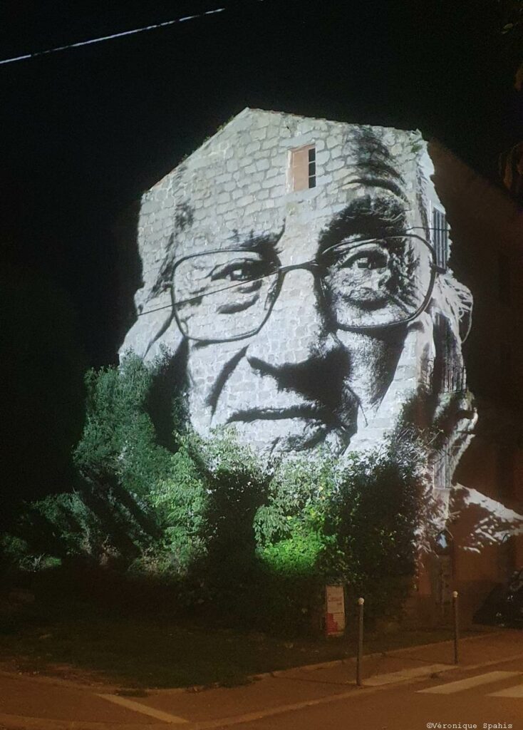 Sous le ciel du Sud-Corse, à la tombée de la nuit, quand la lumière s’adoucit et que le vent descend des montagnes, des visages apparaissent sur les murs, les arbres, les rochers. Ce sont ceux des habitants du territoire, projetés à la tombée du jour dans une série d’installations poétiques signées Philippe Echaroux, artiste international connu pour ses portraits lumineux à l’échelle du paysage.