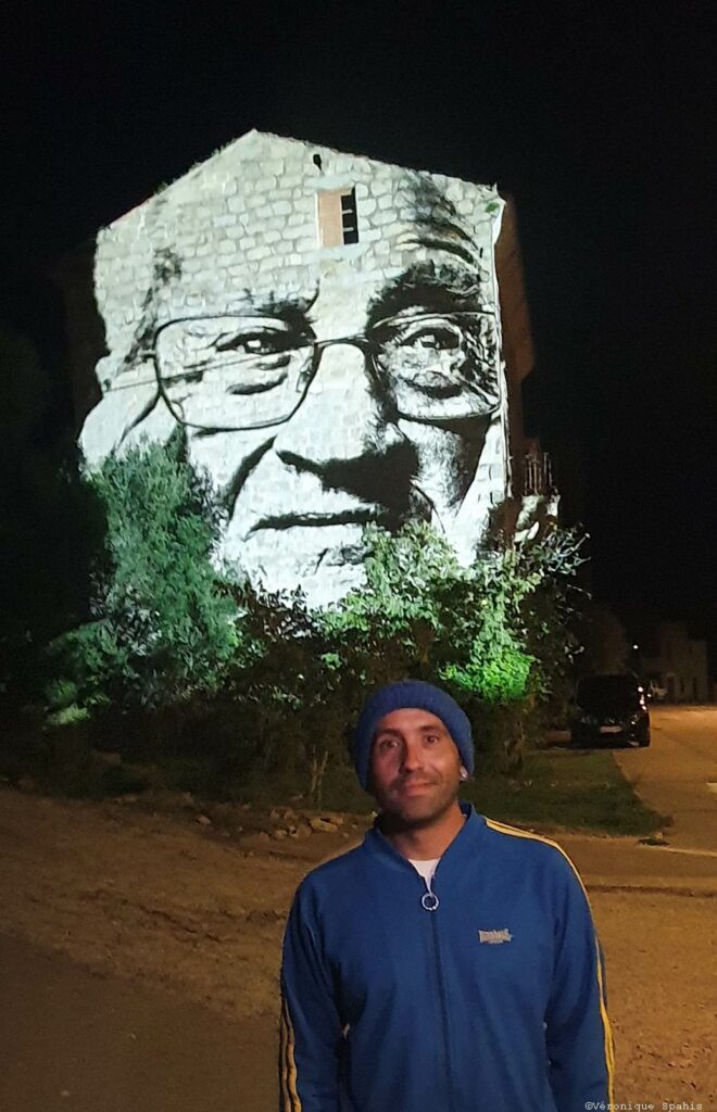Il photographie les habitants dans leur quotidien, puis projette leurs portraits sur des lieux emblématiques — un mur ancien, un bastion, un arbre centenaire. La projection ne laisse aucune trace, elle ne dure que le temps d’une soirée, mais sa force émotionnelle demeure.