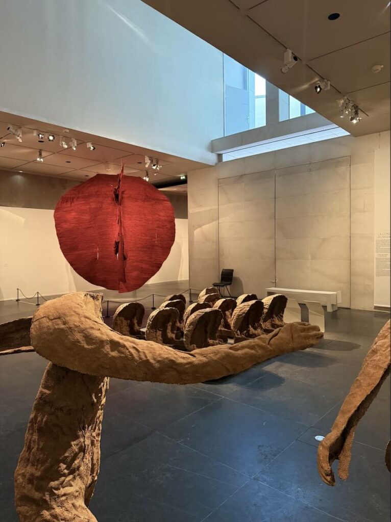 Le parcours s’achève par la section consacrée à la série des Jeux de guerre (1987-1995), qui se compose de troncs d’arbres mutilés enfermés dans des cercles d’acier, sculptés à la tronçonneuse, à l’exemple de La Pie (1992), présentée dans l’exposition. Ils résonnent avec la blessure familiale – le bras arraché de sa mère en 1943 – et interrogent la violence qui traverse l’histoire humaine et plus largement celle du vivant.