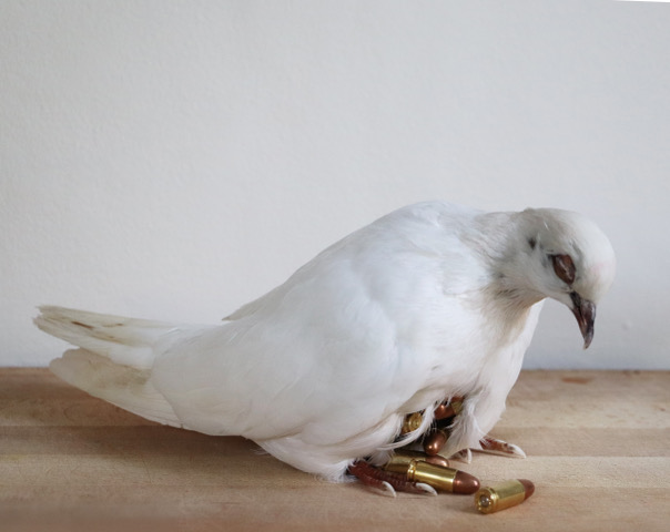 Œuvre présentée : Une réplique d’un AK47 en os humains réalisée après son séjour en Syrie. en 2011. Les guerres sont omniprésentes et l’un de leurs symboles les plus emblématiques est l’AK47. Les os humains deviennent un mémorial pour la paix. L’objet, qui est de la taille originale de l’arme, existe également sous forme de photographie.