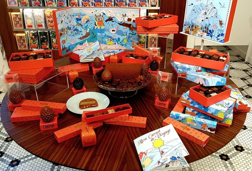 Cette année, Chapon déploie une collection de Noël autour d’un thème enchanteur, « Une merveilleuse Épopée en Chaponie ». Inspirée d’un univers imaginaire et poétique, elle propose un voyage où chaque gourmandise devient une étape d’un récit féerique. Le design des coffrets, les illustrations et même la mise en scène des vitrines s’unissent pour créer une atmosphère de fête immersive.