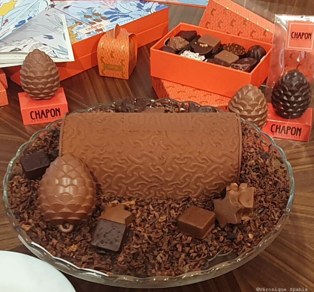 Autour de ces pièces maîtresses, Chapon décline une large gamme de cadeaux gourmands. Les coffrets de 24, 40 ou 56 chocolats permettent de composer des présents élégants, tandis que les plumiers de 6 ou 12 pièces s’adressent aux petites attentions. On trouve également des sachets de friture de Noël, des macarons aux parfums de saison, ainsi que des moulages en forme de pomme de pin, garnis de praliné.